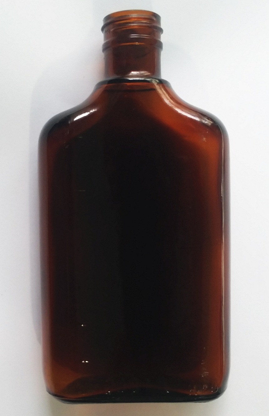 Typical “generic” amber liquor flask made by Hillsboro Glass Company. This bears “76” liquor bottle permit number and “91” date code for 1991.